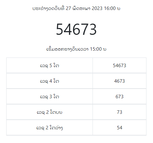 สำหรับท่านที่ต้องตรวจผลการออกรางวัล หวยลาวจำปาสัก งวดวันที่ 27 พฤษภาคม 66 ทาง Zcooby ขอนำเสนอผลการออกรางวัลหวยลาวจำปาสักประจำวันที่ 27 พฤษภาคม 66