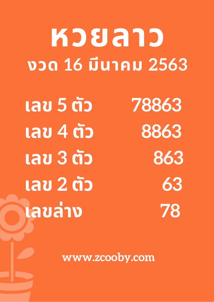 ผลหวยลาวงวด 16 มีนาคม 2563