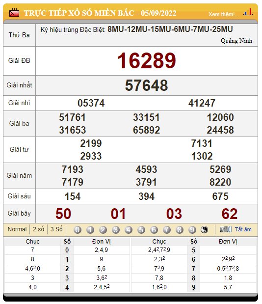 ผลการออกรางวัลหวยฮานอย (พิเศษ) 5/9/65