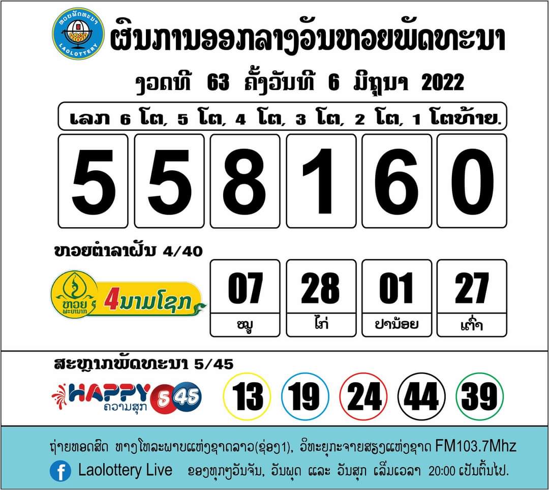 หวยลาวงวดถัดไป (เดือนมิถุนายน 2565)