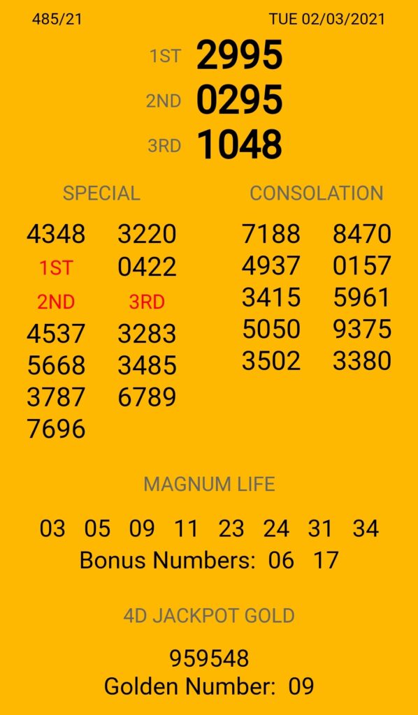 หวยมาเลย์ 2 มีนาคม 2564 : ถ่ายทอดสดและตรวจหวยมาเลย์ หรือ Magnum-4D ประจำงวดวันที่ 2 มี.ค. 64