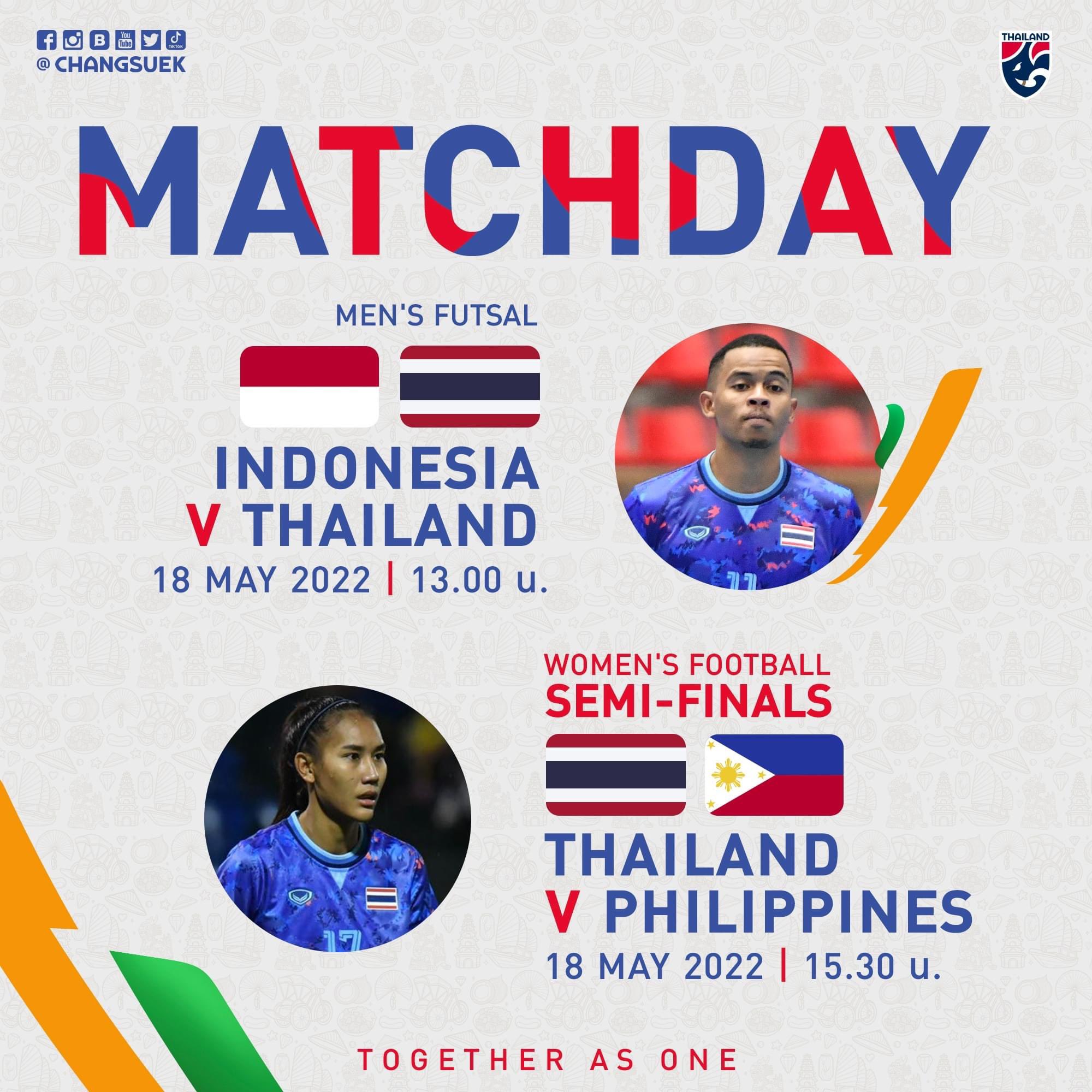 โดยการแข่งขันระหว่าง ทีมชาติไทย vs ทีมชาติฟิลิปปินส์ จะทำการแข่งขันในวันพึธที่ 18 พฤษภาคม 2565 เวลา 15.30 น. และทำการถ่ายทอดสด : ช่อง PPTV HD 36